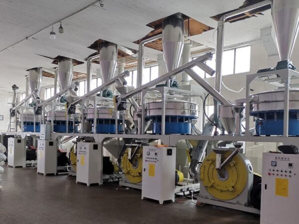 The crusher, also commonly referred to as a grinder or granulator, is primarily used for crushing waste plastics, plastic composites, and factory scrap. Based on the feed direction, it can be categorized into horizontal crushers with tangential feed and vertical crushers with top feed. According to the type of blades used, crushers can also be classified into V-blade crushers, flat-blade crushers, segmental-blade crushers, and hook-blade crushers. The crusher grinds various plastics and rubber into small pieces or flakes. The output can be directly fed as raw material to extruders or injection molding machines, or it can be further processed through extrusion and pelletizing for recycling.